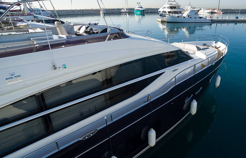 The Princess 82 Motor Yacht mixes elegance with might. Its main deck saloon is a window-wrapped haven, offering stunning views for up to 14 day cruisers.