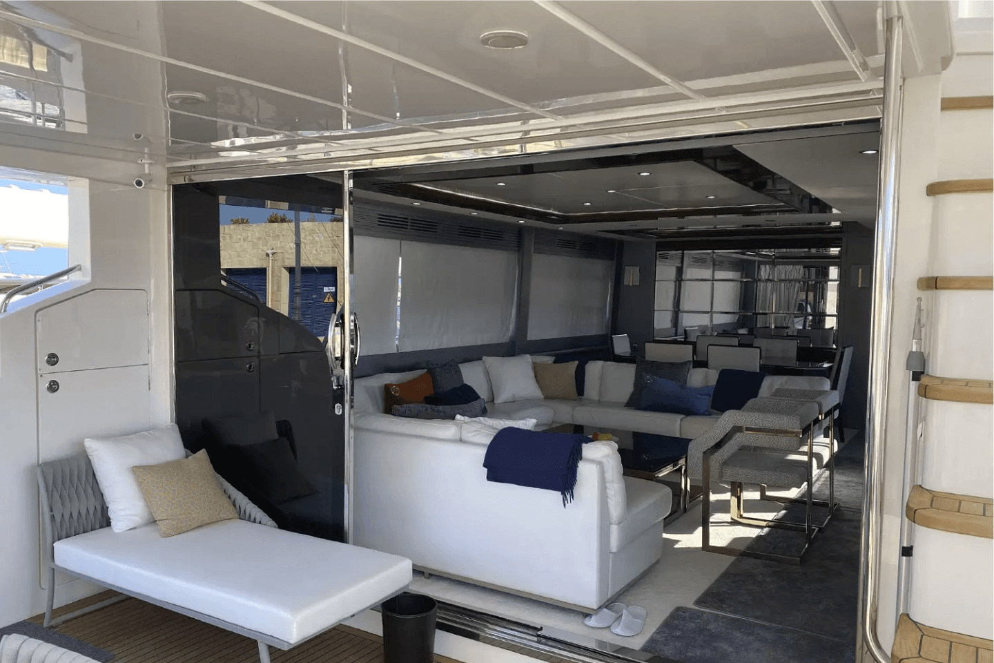 Inside, 4 sumptuous en-suite cabins sleep eight lucky guests in absolute comfort, while panoramic windows flood the salon with natural light. The flybridge is a sunsoaked haven, boasting plush sunpads, a wet bar, and plenty of space to entertain or unwind.